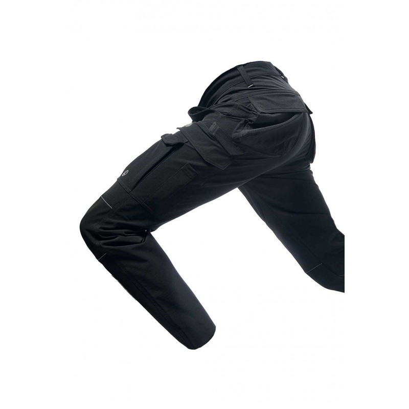 Horizon è un pantalone uomo multitasche che assicura grande funzionalità e praticità: due ampie tasche anteriori, due tasche multifunzionali frontali con cerniera, due tasche posteriori di cui una chiusa con zip e una con velcro, tasche porta ginocchiera, tasca porta-metro e fettuccia porta-martello.